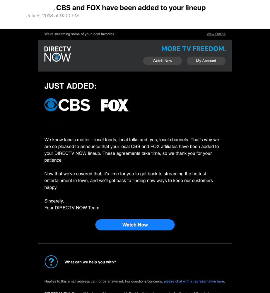 Were giving DIRECTV NOW customers more live local channels to stay connected with more channels coming said Daniel York senior executive vice president and chief content officer ATT Entertainment Group. DirecTV Now of course is now named ATT TV Now The two companies issued a joint press release on Thursday morning. Enter your ZIPcode to see which local tv channels and regional sports networks are available from ATT TV in your area.